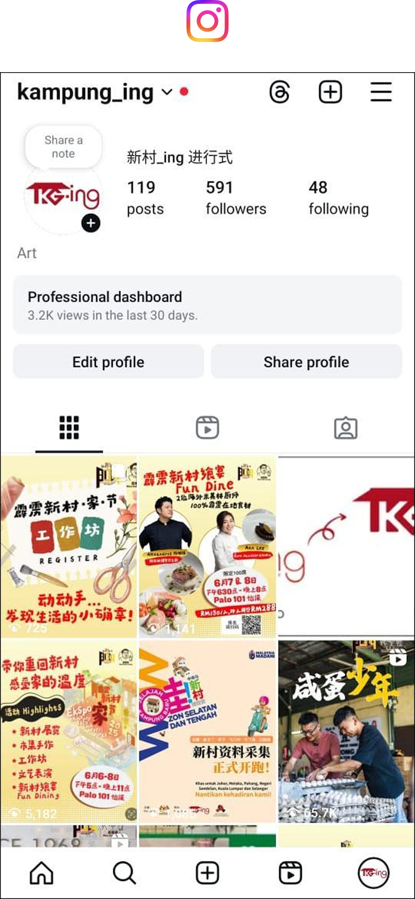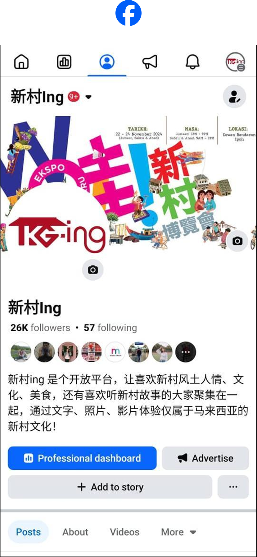 社交媒体截图 - 需包括追踪人数。
